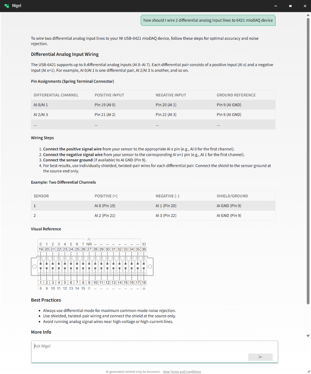 You already know the power of LabVIEW and NI DAQ, but did you know the new Nigel AI advisor is great for questions about NI hardware?